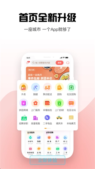 3、整合了外卖点单、团购折扣、日用品采购以及代跑腿办事等多元化的本地服务。