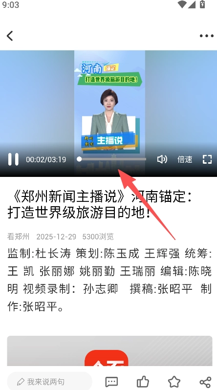 2、在看郑州专题列表中挑选郑州新闻主播说。