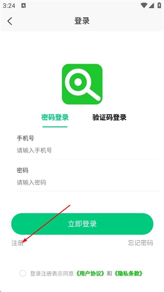 3、接下来在登录页面,点击注册选项,就能进入注册页面。