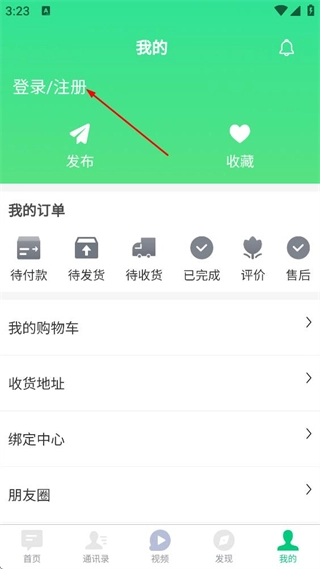 2、进入个人页面后,点击“登录/注册”选项,即可跳转至登录页面。