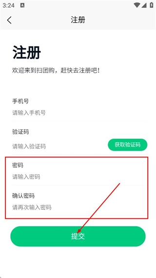 5、最后我们输入密码并再次确认密码,点击提交按钮,这样就完成了注册流程。