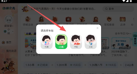 1、幼师贝壳HD与普通版相同,使用时都需要先选择年级。