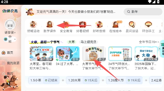 多元体系课程以儿童发展心理学和《指南》为理论根基,针对小中大班不同年龄段特点设计适配课程内容。课程资源丰富,包含1000+高质量互动课件,主题覆盖广泛,既涵盖五大领域、安全教育等基础核心板块,也融入24节气传统文化、幼小衔接过渡准备等实用高频主题,同时会根据社会热点动态实时更新相关内容。