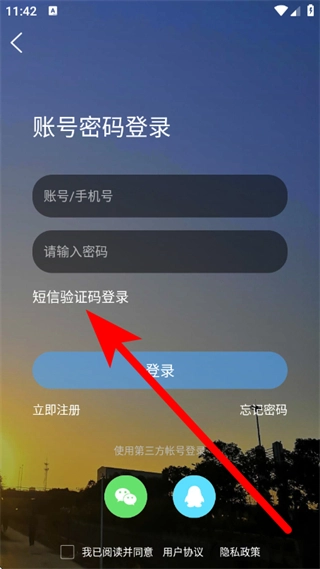 在登录页面,选择短信验证码登录的选项,接着就会进入手机号填写界面。