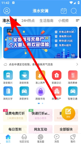 打开淮水安澜应用,点击界面左上角的个人图标,即可进入“我的”页面。
