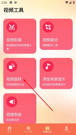 2、进入视频工具页面后,点击【视频旋转】功能选项,随即跳转至选择照片的页面。