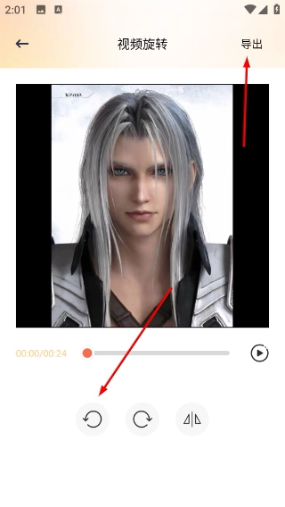 4、在视频旋转编辑页面完成【调整方向】操作后,点击右上角的【导出】按钮,就能完成视频旋转并保存该视频。