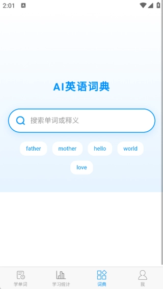 4、在词典页面中可以搜索单词或释义的内容进行了解相关的信息。