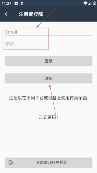 在注册或登录页面,填写【电子邮箱与密码】,点击【注册】按钮就能完成注册流程。