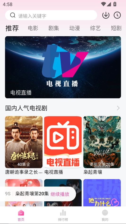 覆盖电视剧、电影、动漫、综艺等资源,还能播放与电视同步的直播节目,内容类型丰富全面。