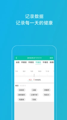 进入主界面后,点击“记录血糖”选项,可手动输入血糖数据,也能自动记录血糖数据。