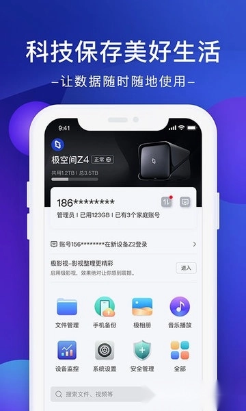 极空间私有云盘具备大容量存储空间,它主要面向家庭用户,可对各类重要物品进行分类存储,并且支持按个人独立空间进行存储管理,查找起来更加便捷,同时我们还能自行设置隐私保护功能。