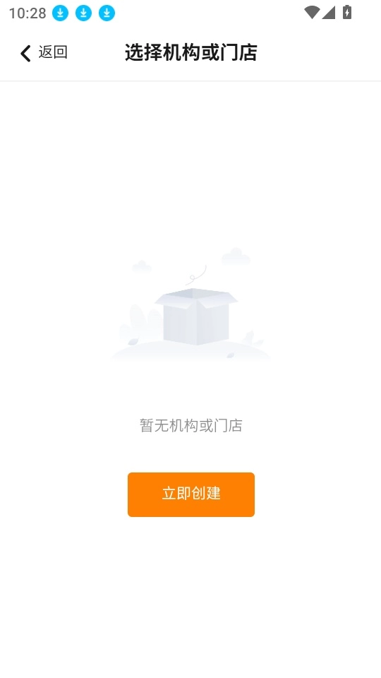 然后在“选择机构或门店”的界面里,点击“立即创建”按钮,这样就能进入下一步操作了。