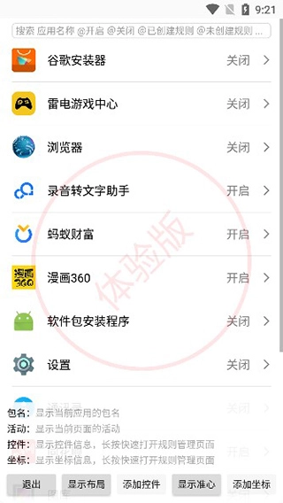 tapclick体验版是一款完全免费且开源的广告跳过工具,它还能助力我们完成各类自动化操作。同时,该软件支持自定义规则,让我们可以适配任何遇到的软件。例如,我们可以为直播软件设置一套开屏广告跳过规则,之后每次打开软件时,它就会自动执行跳过操作,让我们瞬间进入主界面!此外,tapclick软件无需进行root操作,是一款非常值得拥有的工具。