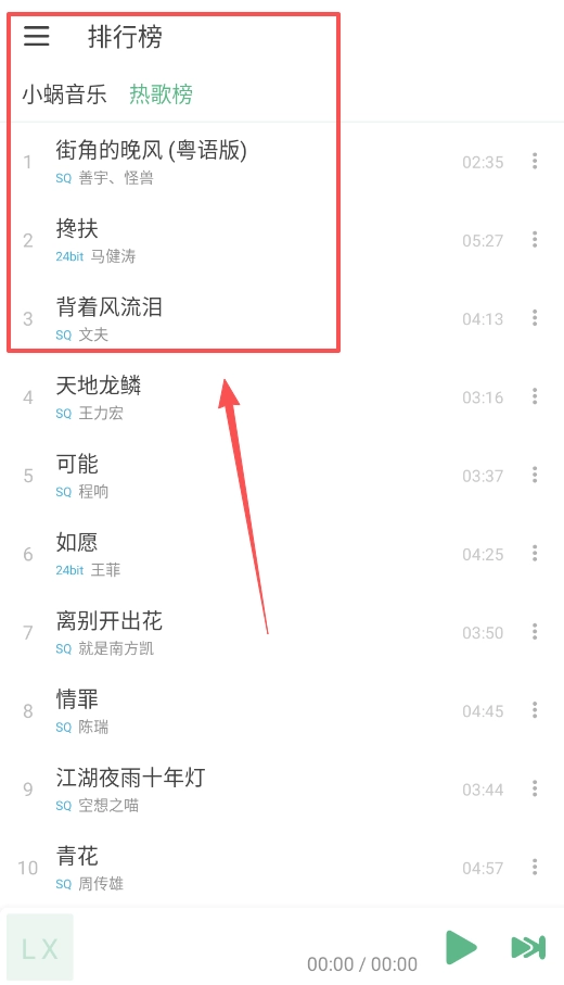 想知道当下有哪些热门歌曲,点击“排行榜”就能一目了然,这里清楚地展示了热歌榜的前十首歌,让你可以轻松快速地找到自己想听的。