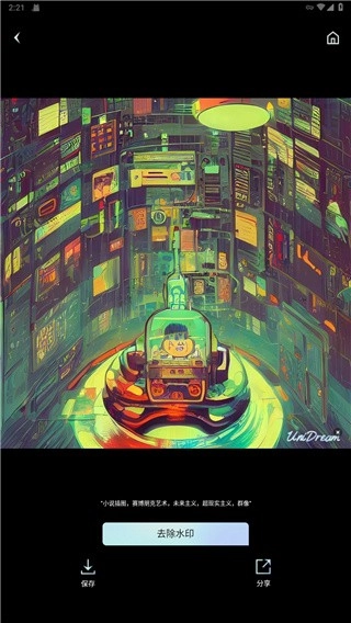 第四步:创作完成!“小说插图,赛博朋克艺术,未来主义,超现实主义,群像”,最后去除水印保存即可。