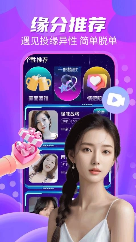 拥有缘分推荐的功能,能够持续为用户推送高颜值的优质单身异性。