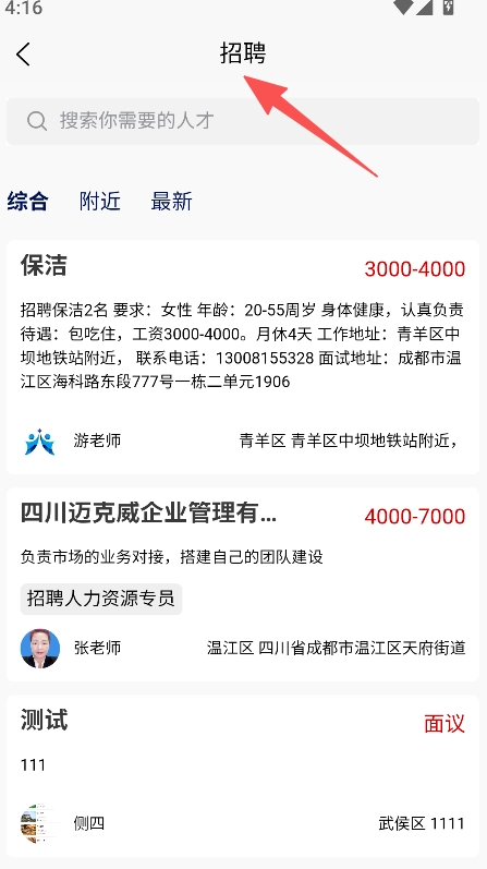 2、职位信息涵盖薪资、要求、地址等内容,全面呈现相关信息,有助于提升招聘与求职选择的合理性和透明度。