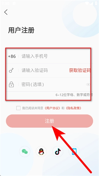 用户在注册页面操作时,需先输入手机号,接着输入验证码并设置密码,之后勾选相关协议,最后点击注册按钮即可完成注册流程。