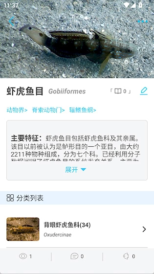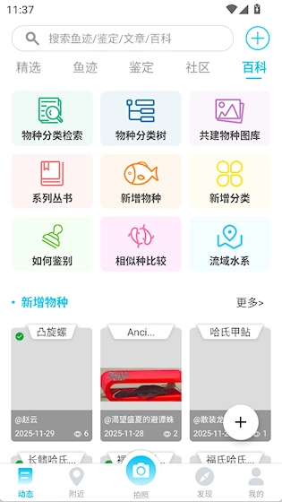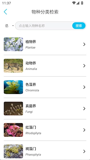 在动态界面的百科栏目中,点击物种分类检索