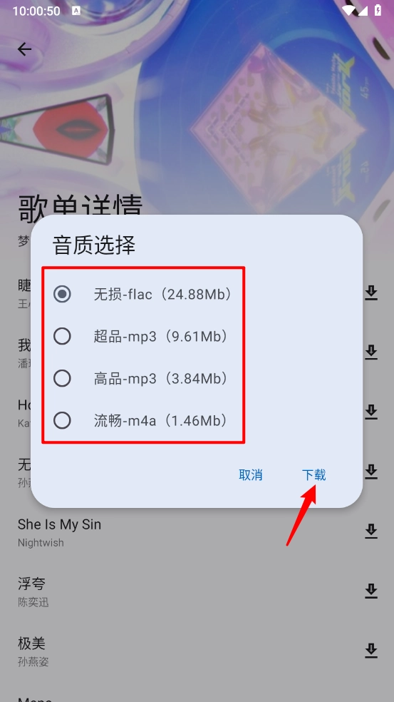 然后选择所需音质,点击""即可。