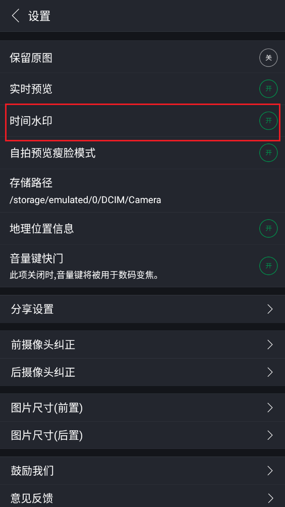 进入后在设置页面点击时间水印右边的"关"。