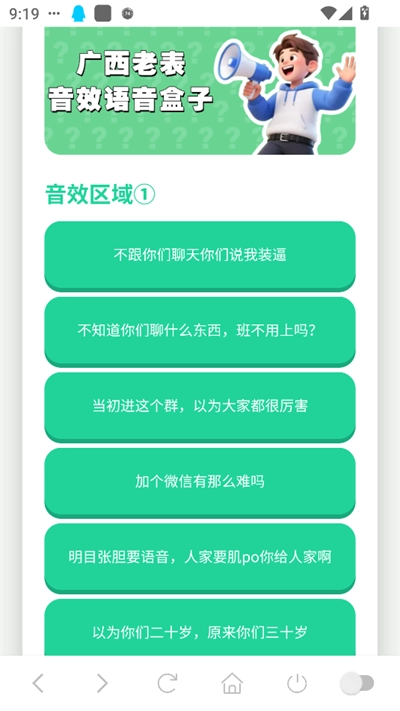广西老表语音盒是一款完全免费的趣味语音软件,里面专门收录了超多魔性又接地气的广西风味语音片段。无论是搞怪问候、方言搞笑还是经典梗段子,这里都能找到。它支持一键播放,还能轻松调节模式,让你畅听原汁原味的广西口音语音包。
