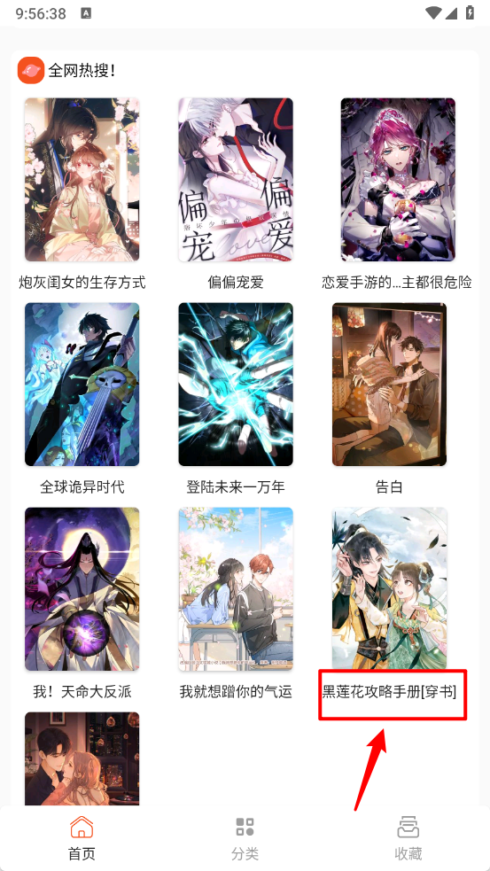 最后返回界面,在收藏板块,即可看到所收藏的漫画。