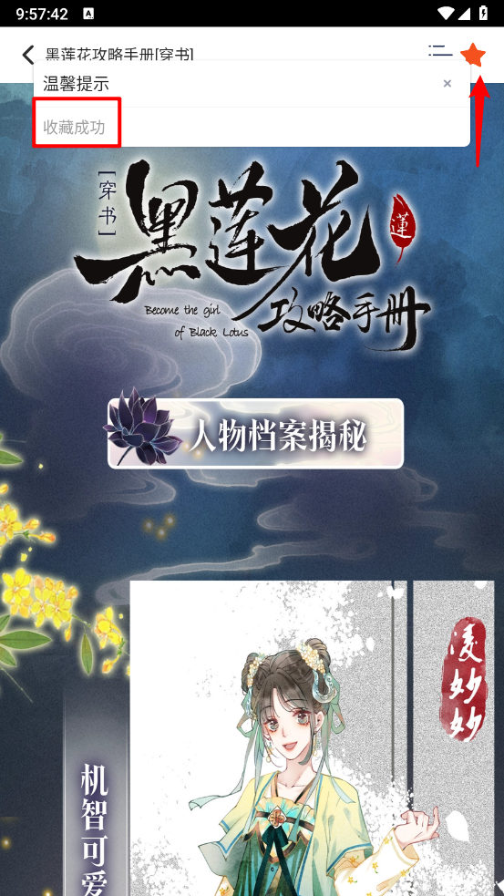 接着进入阅读页面,点击右上角的小星星图标,就像图中展示的那样,这样就能完成收藏了。