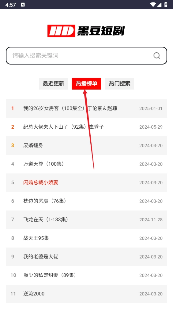接着进入热播榜单板块,就能随时查看该板块下的相关榜单短剧,具体情况可参照图示。