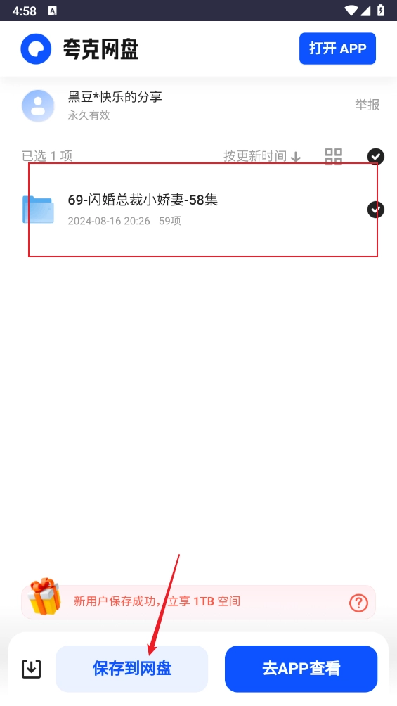 如图,会自动跳转至网盘,一键保存即可进行观看。