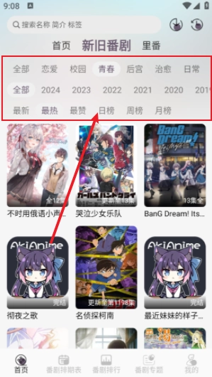 进入首页后,能够依据题材、年限、榜单等条件挑选自己需要的动漫。