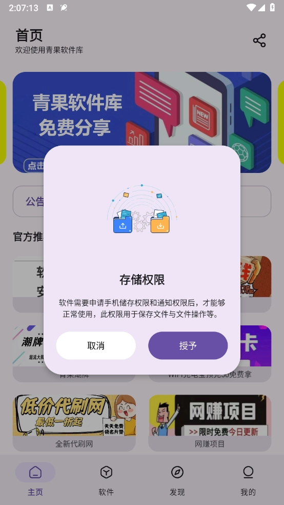 打开青果软件库,点击"授权"相关使用权限。