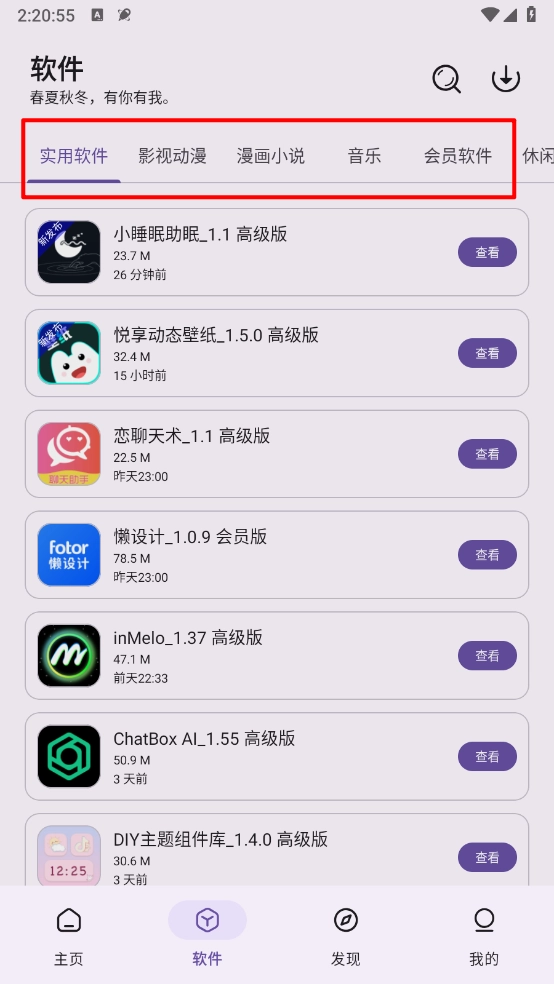 青果软件库是一个免费的软件资源分享平台,这里汇聚了影视动漫、漫画小说、休闲娱乐等各类资源,所有资源都支持免费安装和使用。平台界面设计清爽简洁,没有烦人的广告干扰,而且资源加载速度非常快,通过这一个软件就能满足你看电视、读小说、听音乐等多种需求。