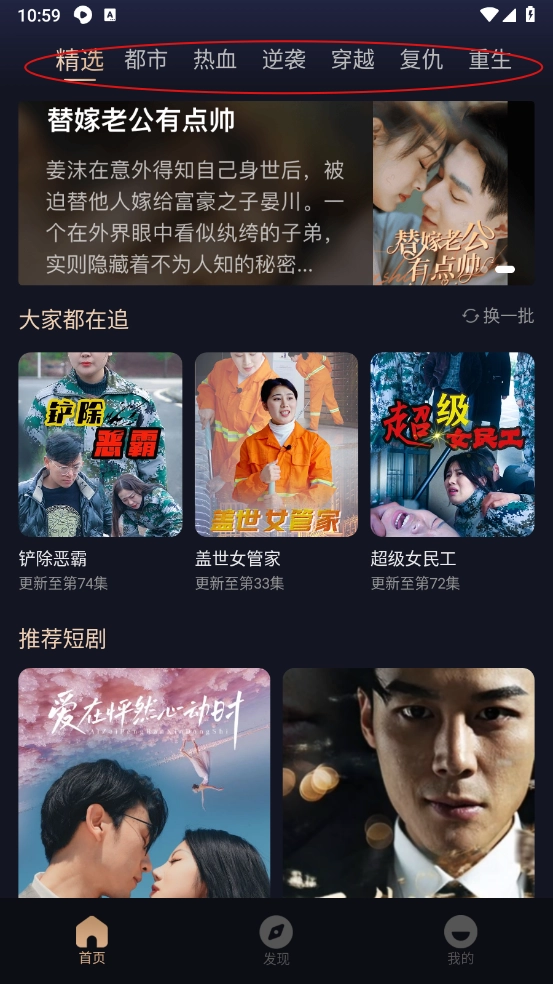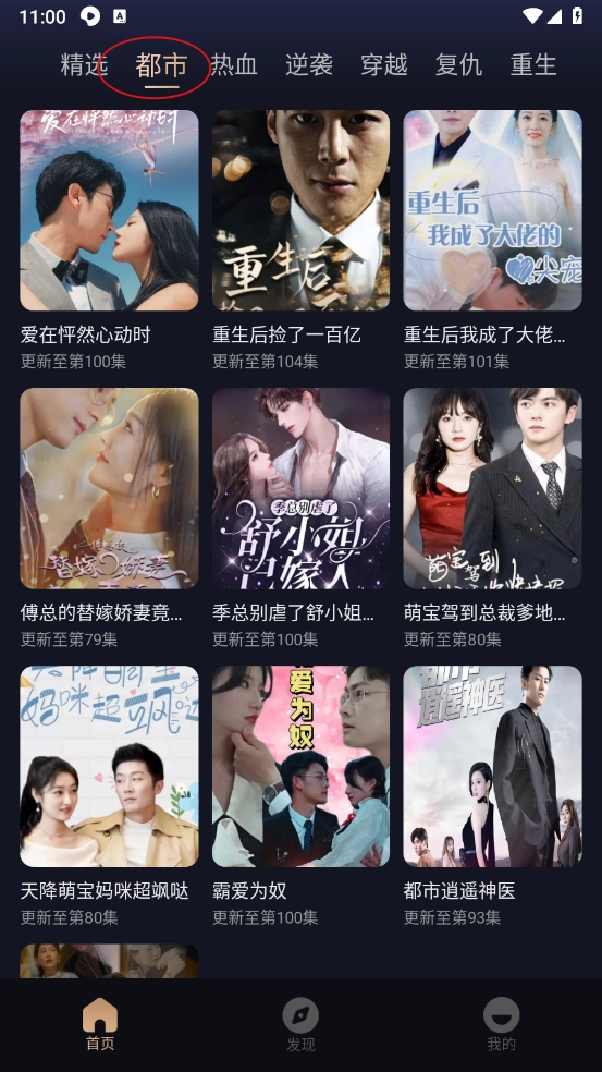 点击"都市",可以在里面筛选喜欢的短剧。