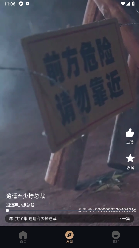 在“发现”板块,上下滑动就能切换短剧,点击收藏按钮还能方便下次观看。