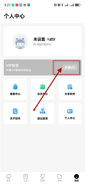 如图所示,在vip状态右点击"开通VIP"。