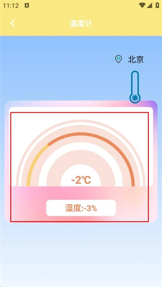 在温度计页面,能够查看当前定位地点的温度、湿度等环境相关数据。