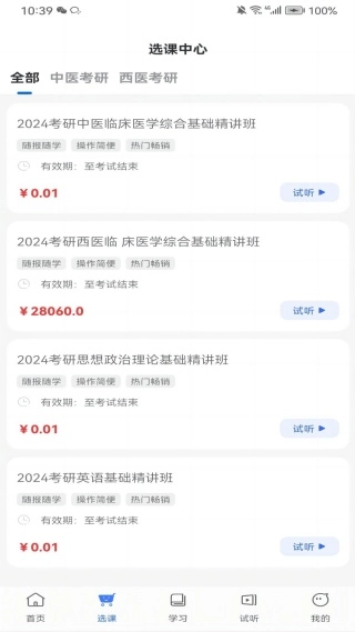 1、安装后,在这里能随时获取更多考研学习资源,还可以自由在线挑选课程;