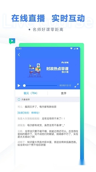 由专业名师进行授课与答疑,学生能够随时发起提问,师生之间可实现双向互动的在线互动直播空间