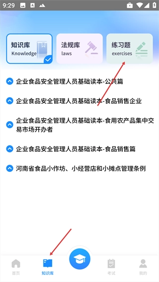 1、在知识库页面,点击【练习题】选项,切换到对应板块。