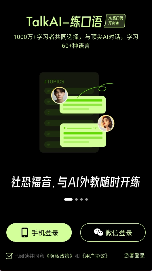 TalkAI练口语是一款专注于外语口语训练的应用,它借助模拟真实对话场景的方式,助力用户增强语言表达能力。该应用提供了多语种的练习选择,覆盖了日常沟通、专业领域话题等丰富场景,并且支持语音和文字两种交互形式。同时,它还能依据用户的实际语言水平,灵活地调整对话的难易程度,从而让口语练习更贴近真实的交流情境。