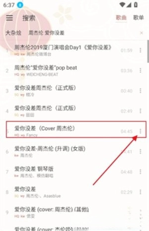 2、选择喜欢的音乐,点击右侧三点。