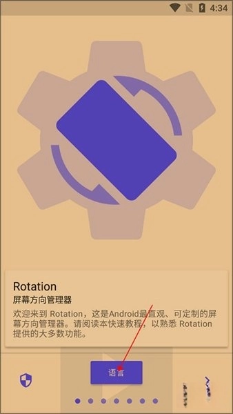 1、打开Rotation,进入应用界面可点击设置语言选项。