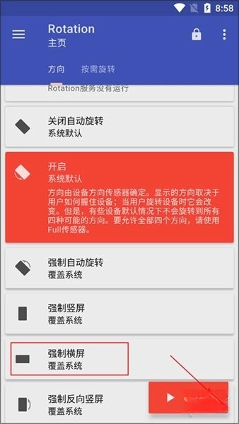 1、帮助用户强制转换屏幕显示方向,可以根据自己的需求进行设置。