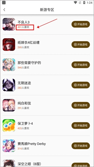 点击“新游专区”,就能浏览近期上线的各类新游戏,同时也能查看每款游戏的受欢迎人数。