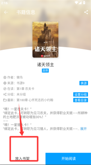 2、找到你想要看的小说后,点击查看小说信息,然后点击加入书架。