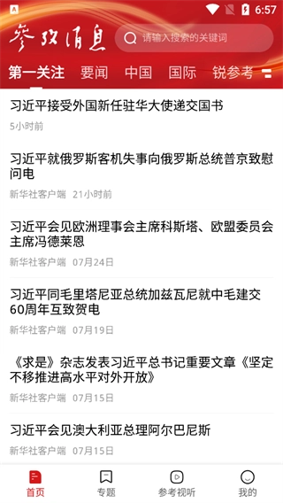 打开参考消息手机客户端,首页便呈现各类精选的全球主流媒体报道,为用户带来权威且客观的国际资讯。