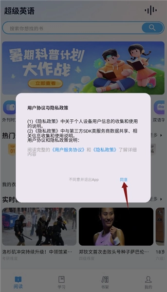 首次打开应用时,需要点击同意用户协议与隐私政策,确认后才能进入主界面。