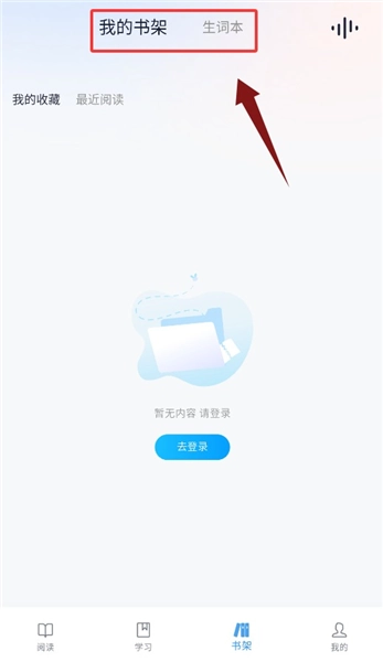 书架界面可管理我的书架与生词本,便于复习与查阅。